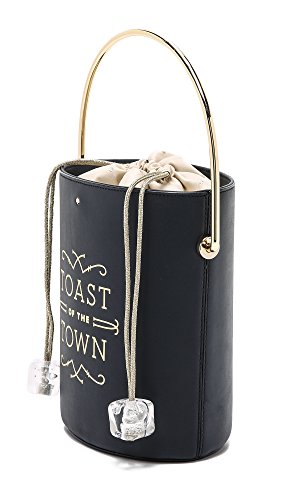 -. Brand : kate spade new york -. Department : Womens -. Feature : Cowhide / Height 8in / 20.5cm / Width 6in / 15.5cm / Depth 4.5in / 11.5cm -. ProductGroup : Shoes -. ProductTypeName : HANDBAG -. Title : Kate Spade New York Women's Champagne Bucket Bag Metallic 'Toast of the 'Town' lettering complements the charming, clever look of this Kate Spade New York bag. The structured, champagne bucket-inspired silhouette has a curved metal handle and a drawstring closure. Lined interior with 1 pocket. Dust bag included.