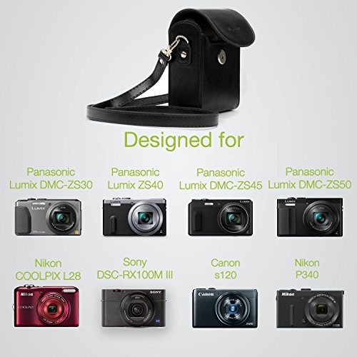 MegaGear Protective Black Leather Camera Case, Bag for for Panasonic Lumix DMC-ZS45, Panasonic Lumix DMC-ZS50 / TZ70, Nikon COOLPIX L28, Sony DSC-RX100 V, DSC-RX100M III, DSC-RX100 IV, Canon s120, Nikon P340