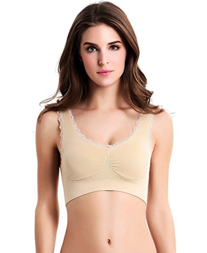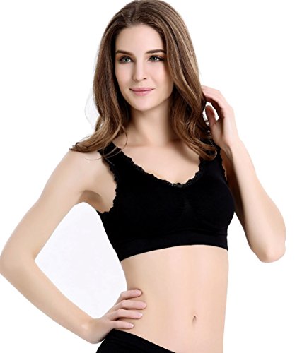 -. Title : BRABIC Women Sports Bras Lace Trim Padded Bralettes Tops Push Up Pack of 3