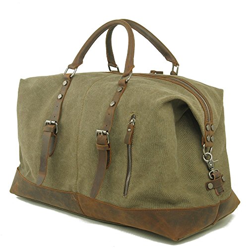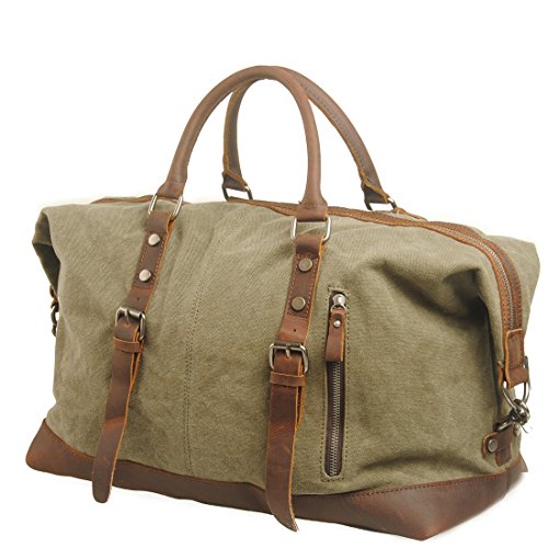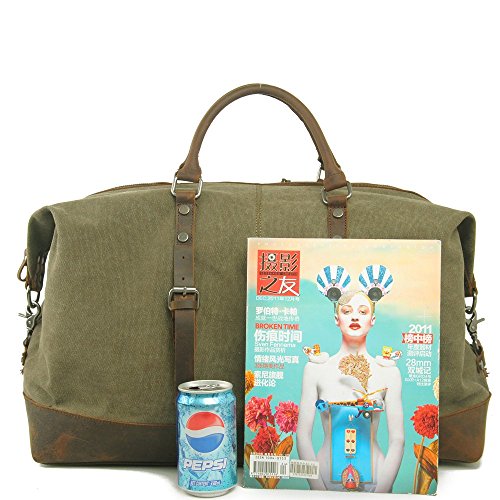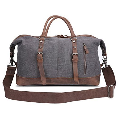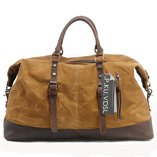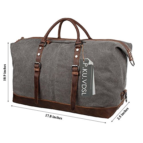 -. Feature : ★ 100% GUARANTEE & TOP QUALITY -- P.KU.VDSL Travel Duffles, High Quality Canvas & Genuine Leather Straps & Smooth Zippers. It is strong, roomy & durable enough. This is a top quality weekend/travel bag is in tough canvas and real leather that can be carried in the hand or worn over the shoulder. / ★ NICE DESIGN -- The mens canvas leather holdall designed with a main compartment, a small front pocket, an inner zipper divider, an inner wall zipped pocket and two open slots which makes it very easy to get small things. This is a really striking and practical leather and canvas bag. / ★ VERSATILITY -- Overnight weekend large capacity satchel tote bag, This canvas bag is perfect for weekends away, travel duffle bag, large handbag, sport handbag, holdall, large shoulder bag, and it is also ideal for gift. / ★ SIZE -- The bag is a useful Extra Large size, 21 x 9 x 16.5 inches, 3.4 pounds. but without being too large to be practical. The bag is incredibly spacious and a generous size making it ideal for use when go away for a long weekend. / ★ NOTE -- Product image 100% in-kind shooting, it is normal that the color may be a little different due to production batch or ambient light and different display resolutions.