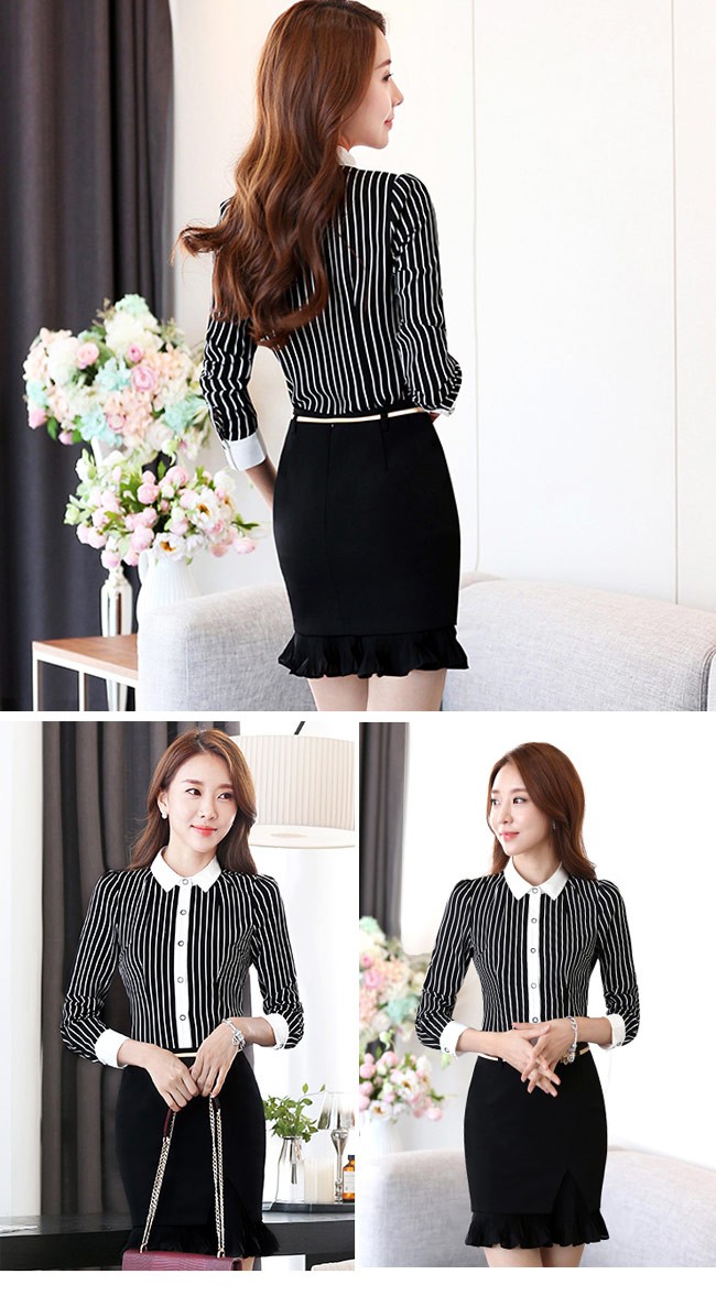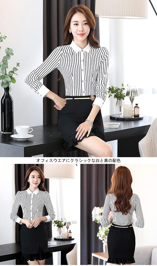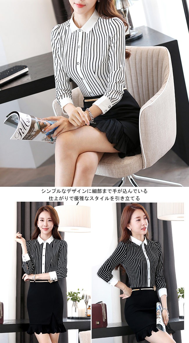 | 商品名 | レディース シャツ OL 折り襟 ストライプ柄 女性用 オフィス ブラウス 長袖 通勤 トップス スタイリッシュ 上着 着まわし |