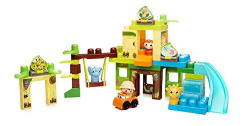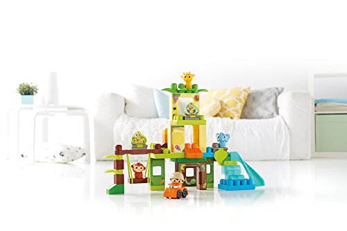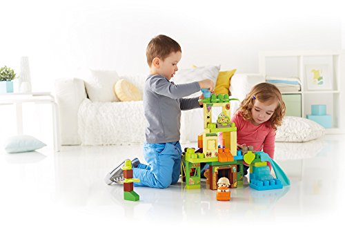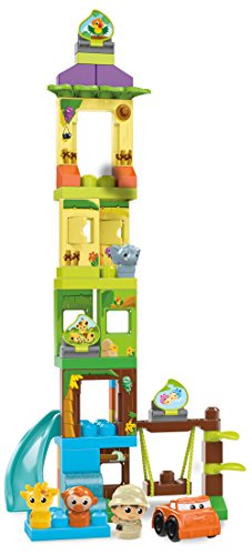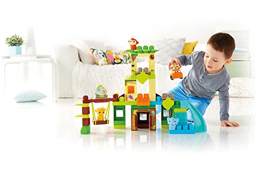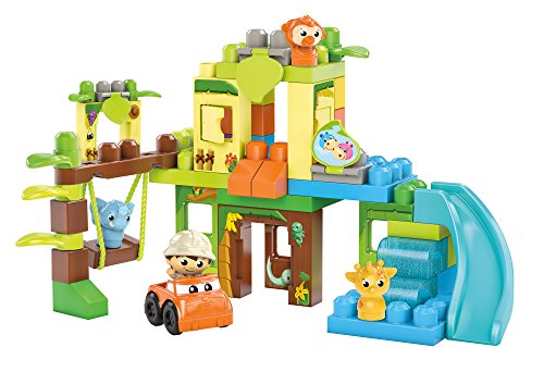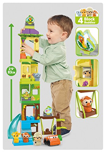 -. Feature : Buildable safari with trees, slide, moving swing, flip-and-reveal picture tabs, and doors and windows that open / 59-piece set includes blocks, special parts, and big panels for building taller and faster / Comes with a rolling car and four Block Buddies, including an Explorer, Elephant, Giraffe, and Monkey / Rebuild up to 3 feet tall! / Hands-on play for early childhood development