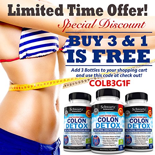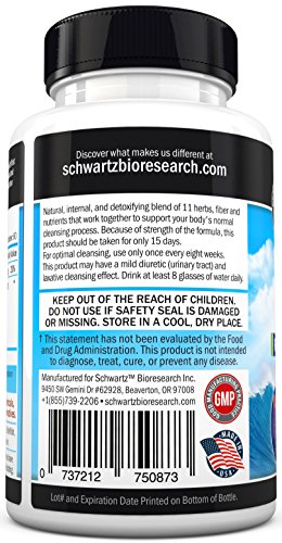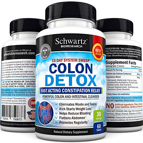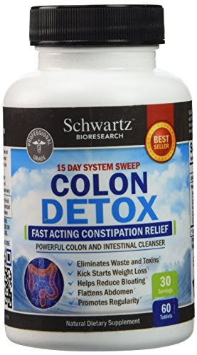 -. Binding : Health and Beauty -. Brand : Schwartz Bioresearch -. EAN : 0784922254092 -. Feature : If you want to lose weight a Colon Detox may the best way to start: With our 15-Day Colon Detox Weight Loss Formula, you will see results quickly. A flatter stomach, fresher breath and complete elimination of built-up waste are just some of the benefits of our formula. / Professional Grade Colon Detox Formula: With extensive experience in Dietary Supplements, Schwartz Bioresearch's Pure Colon Detox, the best Detox Cleanse for Weight Loss, uses only Ultra Pure Ingredients that are 100% natural, safe and have no side effects. / Great Health Starts with a High Quality Colon Detox Cleanse: All our products are 100% natural, contain no GMOs and are free of preservatives, fillers and binders. A high quality detox cleanse weight loss increases the body's ability to absorb vitamins and nutrients, kickstarts digestion, boosts the metabolism, aids in weight loss and rids the body of harmful pollutants, among other incredible benefits. / Powerful and Potent without Compromising your Comfort: Our high quality colon detox powder has been tested extensively. You will be getting all of the impressive benefits of colon cleansers without any of the uncomfortable side effects other cleansing programs may cause. All our products are Made in the USA in a GMP, FDA Approved Facility and are third party tested for purity and potency. / Read the amazing reviews of our customers: Our Colon Detox is so effective that our customers are happy to recommend our products to friends and family. With all our supplements, you can rest assured that you will achieve real results quickly. -. Label : Schwartz Bioresearch -. LegalDisclaimer : * These statements have not been evaluated by the Food and Drug Administration. This product is not intended to diagnose, treat, or cure any disease. -. Manufacturer : Schwartz Bioresearch -. MPN : na -. PackageQuantity : 1 -. PartNumber : na -. ProductGroup : Health and Beauty -. ProductTypeName : HEALTH_PERSONAL_CARE -. Publisher : Schwartz Bioresearch -. Size : 60 Tablets -. Studio : Schwartz Bioresearch -. Title : Effective Colon Detox and Cleanser for Weight Loss - Fast Acting Constipation Relief. Professional Grade - Best Detox for Weight Loss. Made in USA. Money Back Guarantee -. UPC : 789542724611