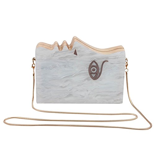 -. Title : Flada Women's Face Acrylic Wood Evening Handbag Clutch Purse Shoulder Bags with Chain