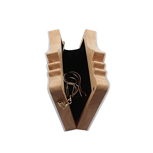 -. Feature : Material: wood and acrylic, polyester lining / Size:18CM*5CM*13CM/7"*1.9"*5.1" / Style: shoulder bag/crossbody bag/clutch / Fashion style, concise makes you look elegance and beautiful and suitable for wedding, prom,evening party and any other activities. / Little leather smell is normal.Putting it outside for few days,the smell will disappear. Please allow little color difference due to different camera or lightenvironment