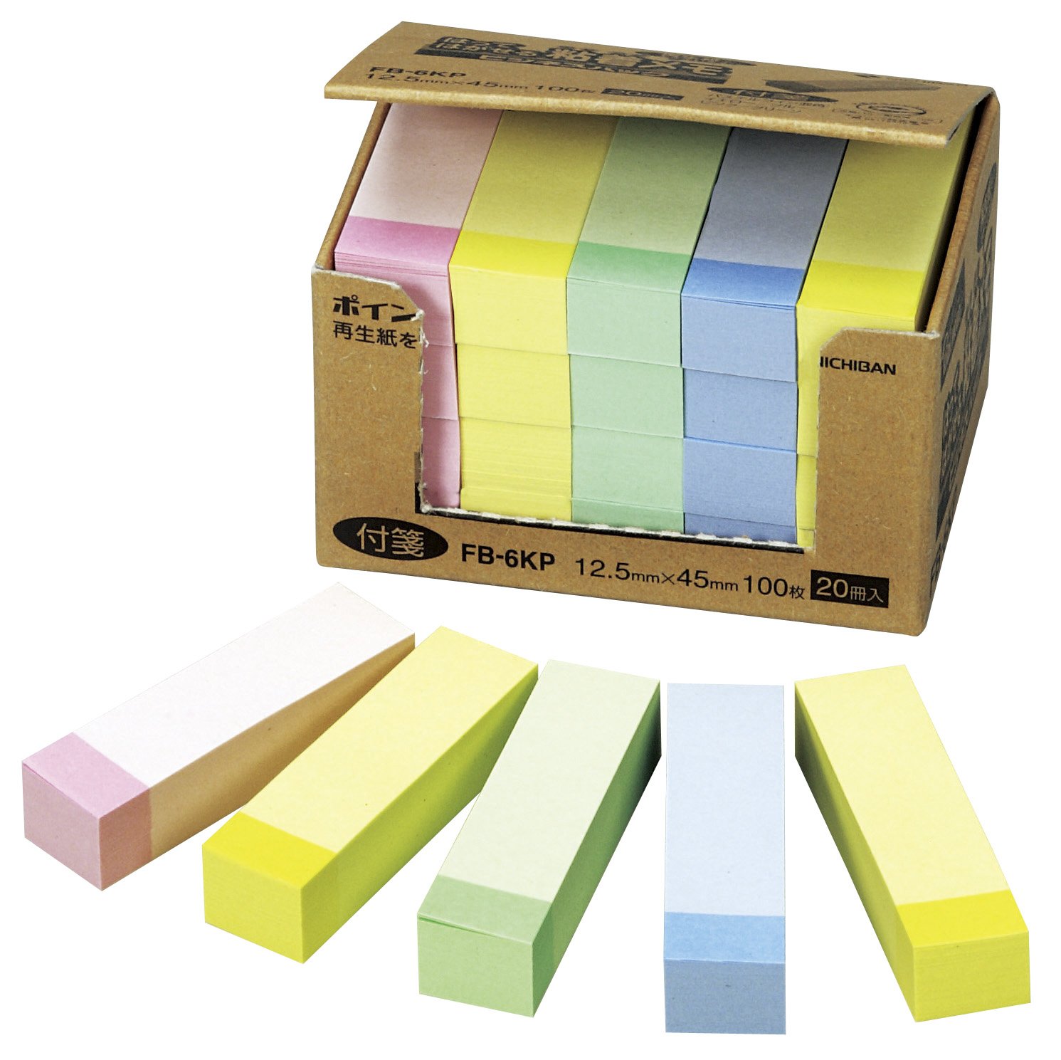 x 20 books input FB-6KP 100 pieces NICHIBAN point memo recycled paper series Business Pack 12.5mm x 45mm pastel color mixing line (japan import)