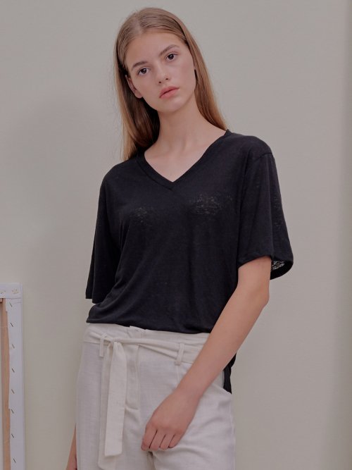 에드센스(ADDSENSE) RIB V NECK T-SHIRT_BLACK