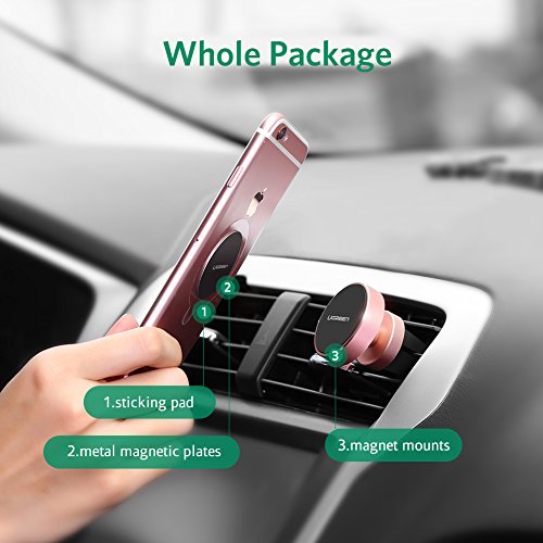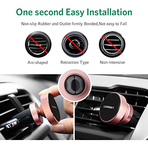 UGREEN Magnetic Car Mount Holder, Universal Air Vent Magnetic Mount for Smartphone, iPhone 6, Samsung Galaxy Cell Phone, Mini Tablets and more (Rose Gold)