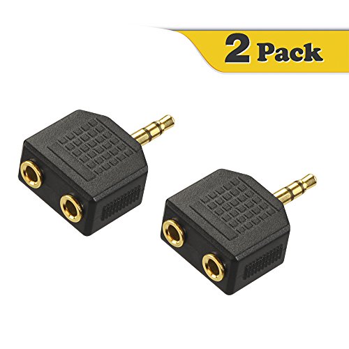 VCE Gold Plated 3.5mm Male to Dual 1/8 Inch Female Stereo Jack Adapter Y Splitter Headphone Converter ( 2 Pack ) Black