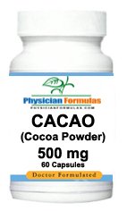 2 Bottles Cocoa Powder Supplement, Cacao, Excellent Antioxidants, 500 Mg, 60 Capsules