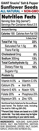 Salt & Pepper Flavored GIANTS Sunflower Seeds(5 oz bag,12 counts)