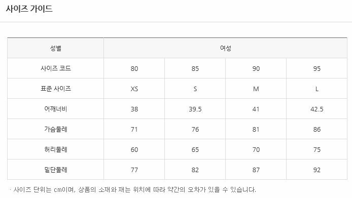 | 소재 | 겉감:폴리에스터95%폴리우레탄5% |