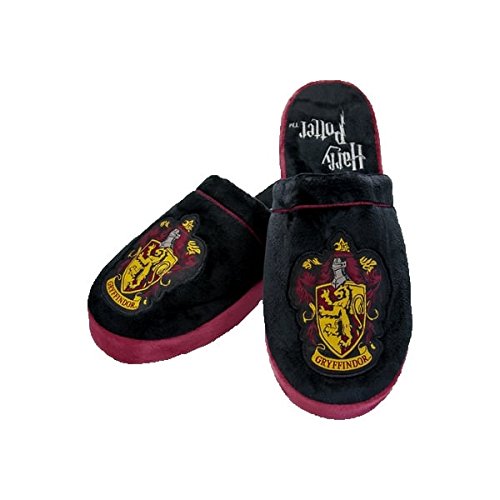 -. Binding : Apparel -. Brand : Harry Potter -. Color : Black -. Department : mens -. EAN : 5055437912766 -. Feature : Avaliable in two sizes: Small and Large / Small: UK 5-7/EU 38-41/ US 6-8 | Large: UK 8-10/EU 42-45/US 9-11 / Made from Polyester with Anti slip sole / Woven badge to body and embroidery to inner sole / 100% officially licensed merchandise -. IsAdultProduct : 0 -. Label : Harry Potter -. Manufacturer : Harry Potter -. Model : 7502 -. MPN : 91277/91276 -. PackageQuantity : 1 -. PartNumber : 91277/91276 -. ProductGroup : Shoes -. ProductTypeName : HOME -. Publisher : Harry Potter -. Studio : Harry Potter -. Title : Harry Potter Gryffindor Adult Mule Slippers Large UK 8-10