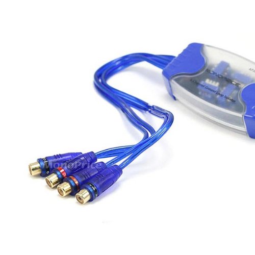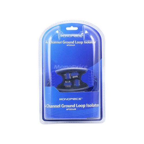 Isolate and eliminate noise caused by a ground loop in an audio circuit with this Four-Channel Ground Loop Isolator. The isolator ensures that the shield ground on each audio cable is isolated from any equipment ground which could cause audible noise when amplified. This device has four channels composed of two pairs of stereo (L+R) inputs and outputs. The nominal DC impedance of the device is 100 ohms and the audio impedance is 3500 ohms at 1000 Hz. The nominal input power is 50 watts with a maximum power level of 100 watts. Each of the RCA plugs and jacks is gold-plated to ensure smooth corrosion-free connections. The unit measures 100 x 50 x 22 mm and both the input and output leads measure 9" in length. Note: The packaging erroneously indicates that the isolator's case is made of metal. It is in fact made of plastic. We are working to correct this discrepancy and apologize for any confusion or inconvenience it may cause.Feature