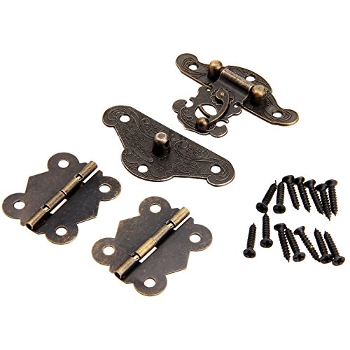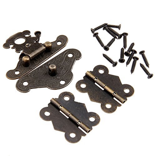 Dophee 1pc Furniture Decorative Cabinet Jewelry Box Latch Hasps and 2pcs Butterfly Hinges with screws