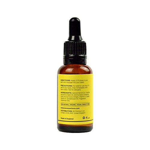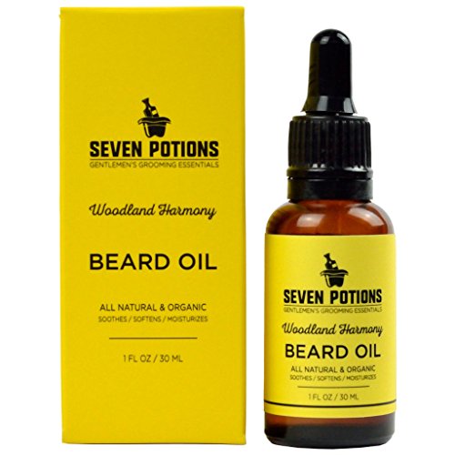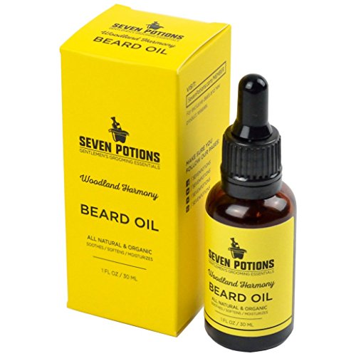 Beard Oil 1 fl oz by Seven Potions. Sweet and Woody Scented Beard Softener. Stops Beard Itch. Natural, Organic, Vegan, Beard Conditioning Oil. Contains...