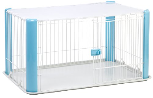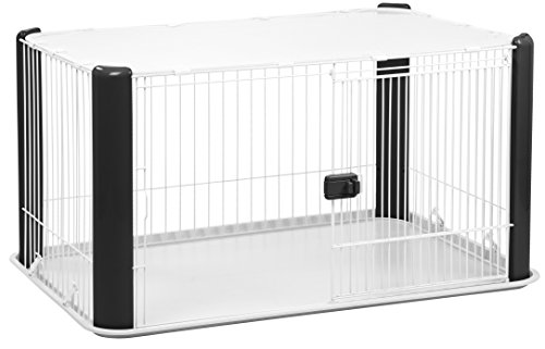 -. Binding : Misc. -. Brand : IRIS USA, Inc. -. Feature : Wire play pen with snap-on mesh roof / Large sliding access door with positive-lock latch / Comes with plastic molded bottom tray and 4 rubber feet / Choose from available color options / Dimensions: 36L x 24.75W x 23.6H inches -. Label : IRIS USA -. Manufacturer : IRIS USA -. Model : 301448 -. MPN : 301448 -. PackageQuantity : 1 -. PartNumber : 301448 -. ProductGroup : Pet Products -. ProductTypeName : PET_SUPPLIES -. Publisher : IRIS USA -. Studio : IRIS USA -. Title : IRIS Wire Dog Crate with Mesh Roof