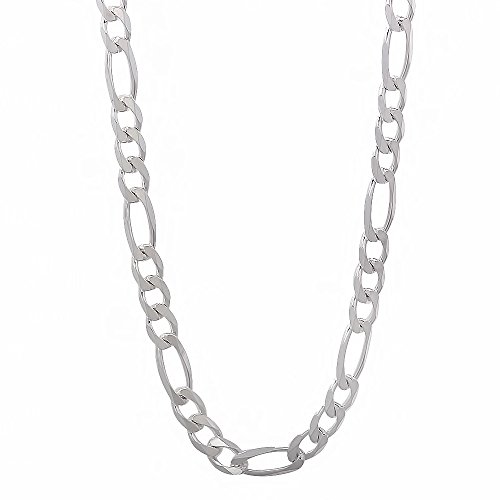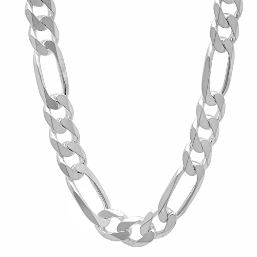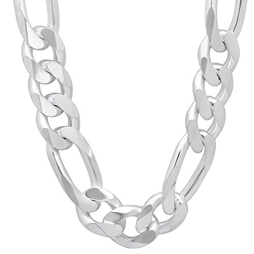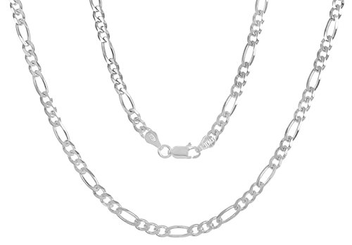 AUTHENTIC .925 STERLING SILVER - This 18 inch figaro necklace is 9.8mm wide (3.3mm thick) with a weight of 60 grams of pure sterling silver that fastens with a sturdy lobster clasp and features a repeating pattern of three round curb links interspersed with an elongated one displays angled facets from precise bevel cuts