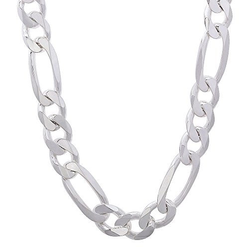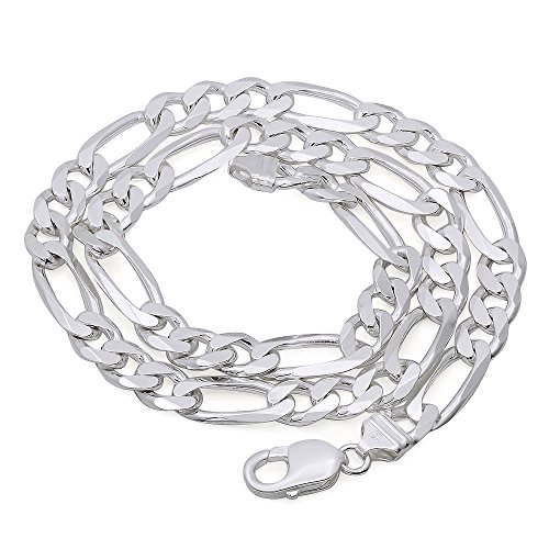 9.8mm Solid 925 Sterling Silver Figaro Link Italian Crafted Chain, 18"