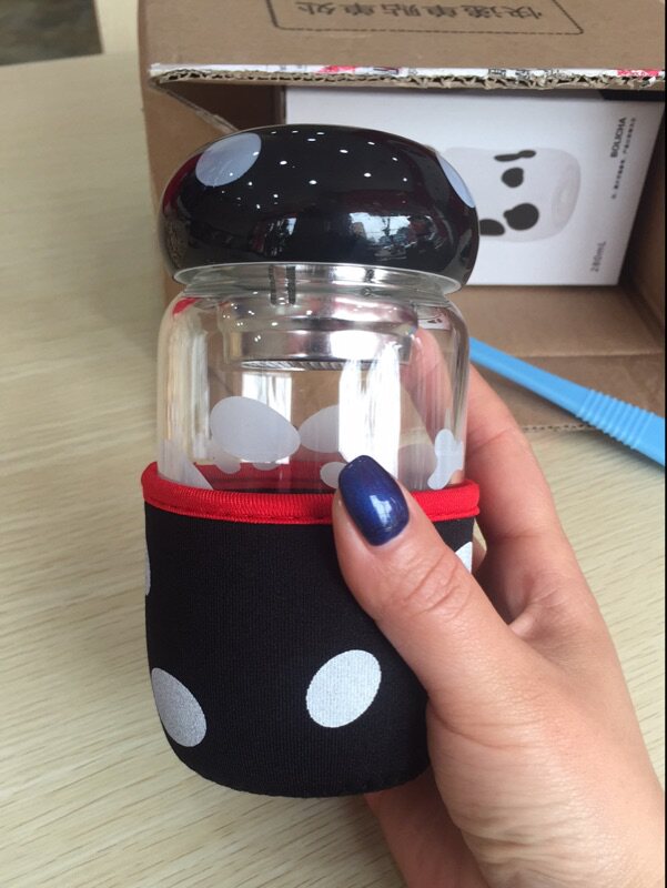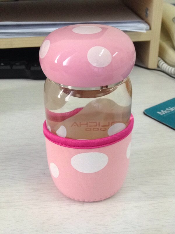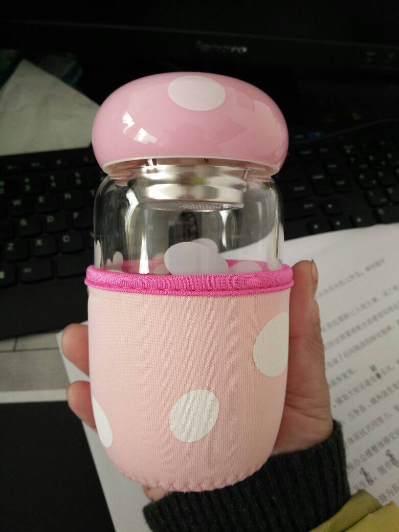 创意蘑菇玻璃杯 便携带盖过滤茶漏带杯套茶杯 学生情侣男女水杯