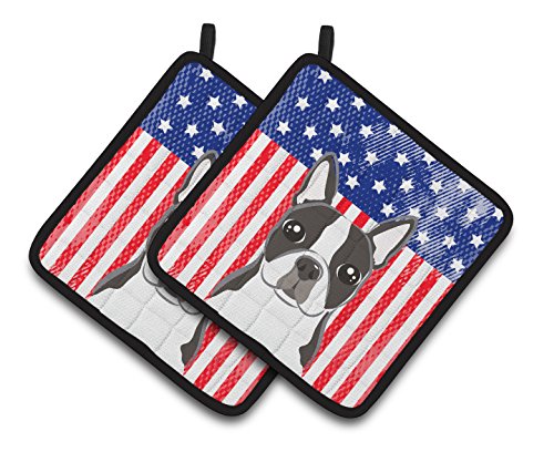 Caroline's Treasures American Flag & Boston Terrier Pair of Pot Holders BB2133PTHD, 7.5HX7.5W, Multicolor