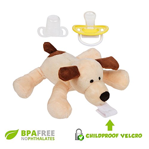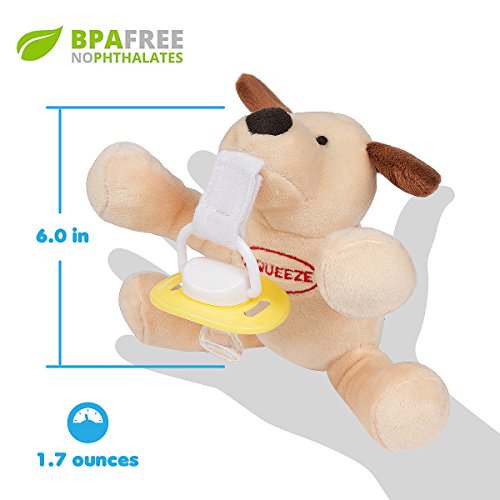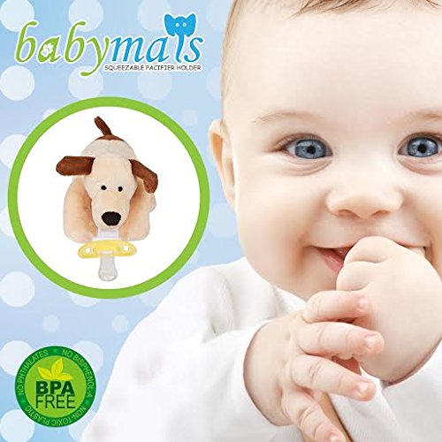 -. Feature : ✅ CRAFTED FROM 100% SAFE, NON-TOXIC MATERIALS, PHTHALATE FREE, BPA FREE, LEAD FREE - Your Babymals detachable plush binky holder is made from durable, safe materials and meets government safety standards for toy pacifiers. 100% hospital medical-grade silicone yellow pacifier and fully comply with the small parts and sharp edge regulations that keep our little ones safe. / ✅ QUICK AND EASY TO CLEAN - Washing your new puppy dummy is as quick and easy as tossing it in the washing machine and letting it air dry. And the baby-safe Velcro strap makes it a breeze to switch a used Binkie with a favorite fresh clean brand pacifier that has a loop like Philips Avent, Dr. Brown's, Gumdrop, Nuby, Mam Air, and more. Teethers with a loop like the Razbaby teether work great also. Binkies with a button shield require a universal adapter and is available from oth / ✅ SOOTHE AND COMFORT YOUR BABY - When your Babymals Baby paci dog Holder and soothie plush arrives pay special attention to how soft the plushie feels in your hands. Made with 100% Polyester and cotton. Baby will love to snle with this charming pacifier holder at nap time and all through the night! / ✅ YOUR BABY WILL SMILE - Watch baby's eyes light up with laughter when she squeezes her fun puppy nuk Holder and the built-in squeaky toy makes a funny sound both mom and baby will love! Sized and textured for little hands to touch and explore, plushies animals helps with fine motor skills making it easy to maneuver the pacifier. Loved by both boys and girls alike. / ✅ 100% SATISFACTION GUARANTEE - We're so confident you're going to love your new removable Attached Baby soother and Holder we offer it with a 100% Satisfaction Money-Back Guarantee! And that's not all: As a valued customer you can also take advantage of our amazing Lifetime Trade-Up Guarantee! (See below for details)