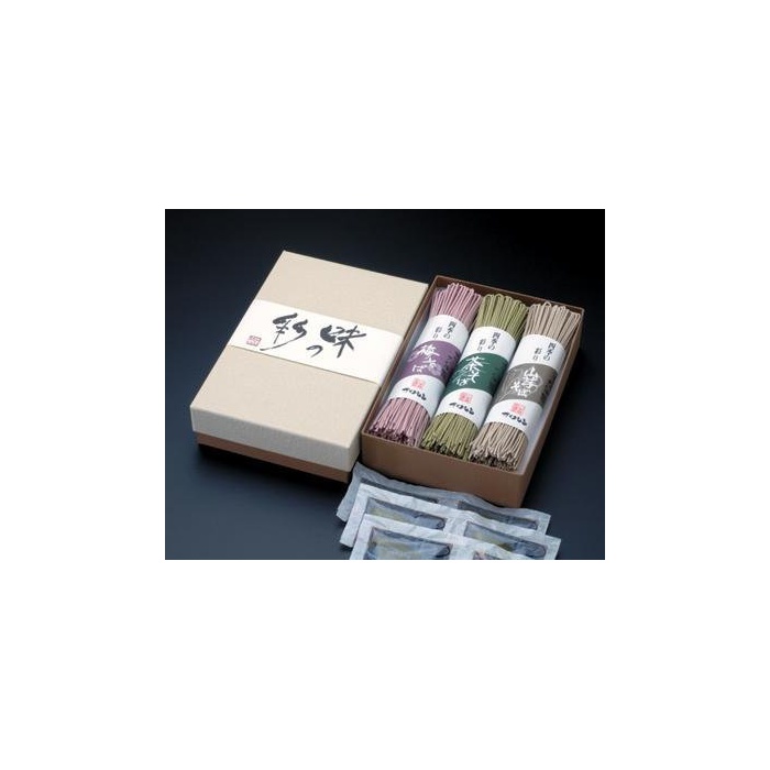원본상품명: 本格3色蕎?(茶そば、山芋そば、梅そば)と?味(?金一味唐辛子) ギフトセット
