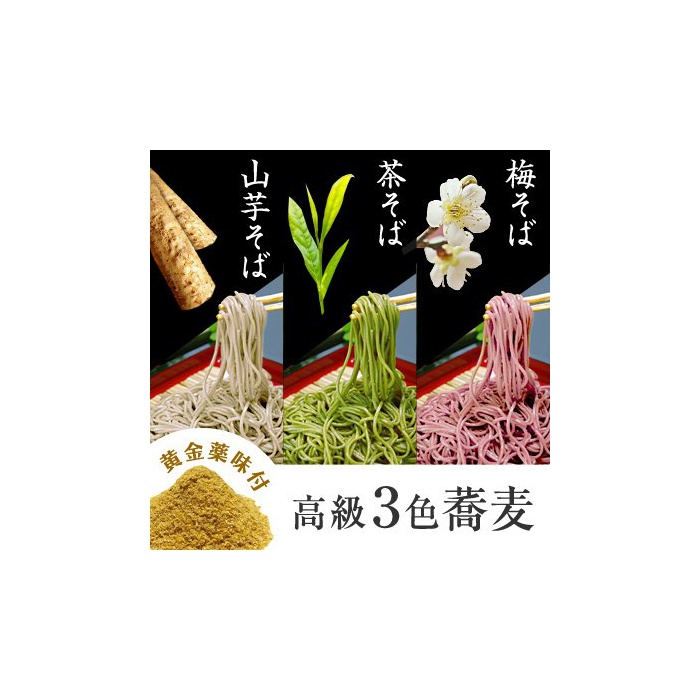 다옆(소바),참마 옆(소바),매옆(소바)가 아름다운 3색의 옆(소바).3개의 색과(풍미)맛가 즐길 수 있는 받아 기쁜 옆(소바)의 세트입니다.