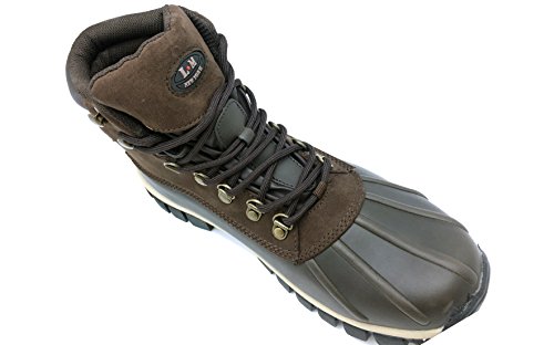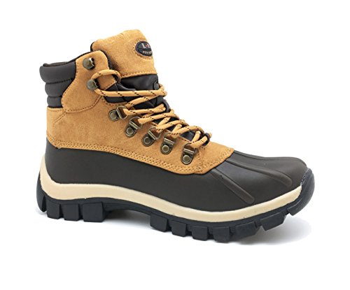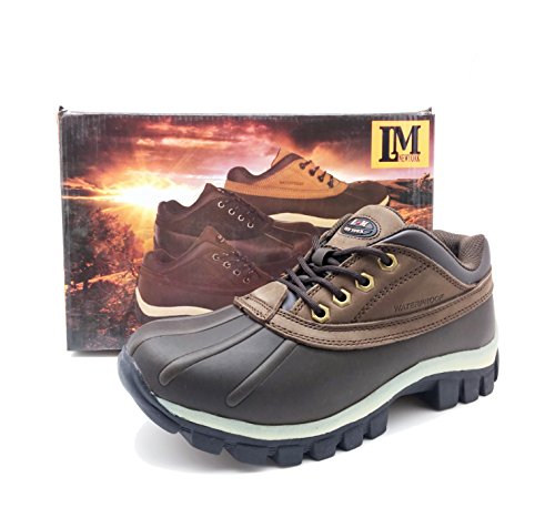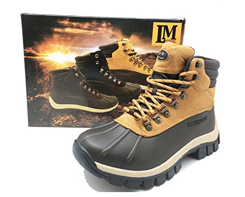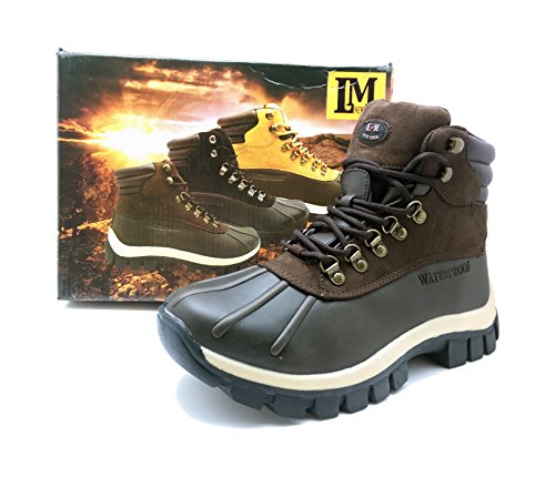 Product Description LM - Mens Waterproof Rubber Sole Winter Boots, Brown, Lace Up, Rubber Sole, Waterproof, Slip Resistant Reducing Sliding and Slipping, Oil Resistant Preventing Outsole from Absorbing too Much Oil, Platform Approximately 1.2 inches, Leather Upper Balance Man Made Materials, Made in China 0