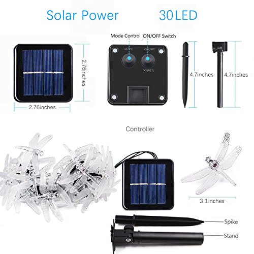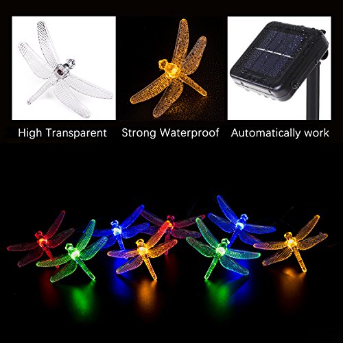 -. Feature : SOLAR LIGHTS FOR OUTDOOR DECORATIVE: 2 pack 20 feet 30 led dragonfly fairy lights, make your garden or home stand out, perfect for any indoor or outdoor events. / SOLAR POWERED STRING LIGHTS: No wiring needed. This outdoor string lights up to 10 Hours super long working time after full charge in the sunlight. / IP65 WATERPROOF DESIGN: Ensure this solar powered outdoor lights withstand all kinds of weather, including heavy rain and snow / YOUR SATISFACTION IS OUR GOAL- We stand behind this product with confidence because of this solar string lights because it is made of the finest and most durable materials available. If for any reason you are not satisfied, you have within 30 days to return this product to get 100% refund. No questions asked.