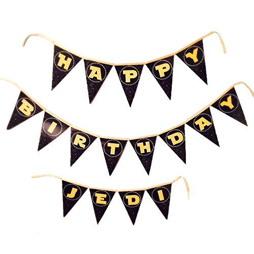 -. Feature : Comes in 3 pieces. / The "happy" banner is 31 inches long. / The "birthday" banner is 50 inches long. / The "jedi" is 25 inches long. / Each flag is 9 inches long and 6 inches wide.