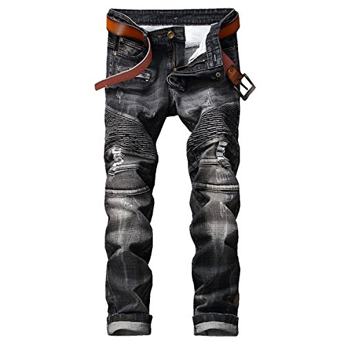 -. Title : P2U Men's Regular Fit Ripped Biker Jean