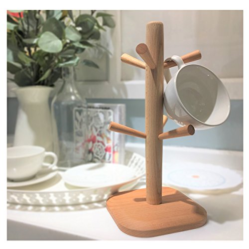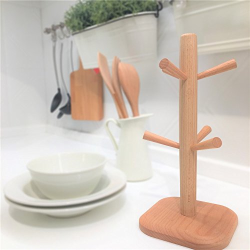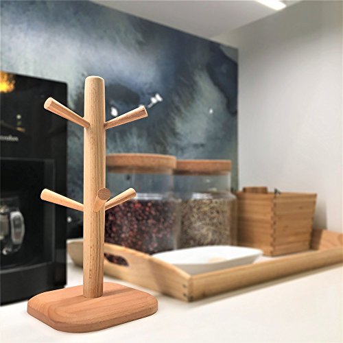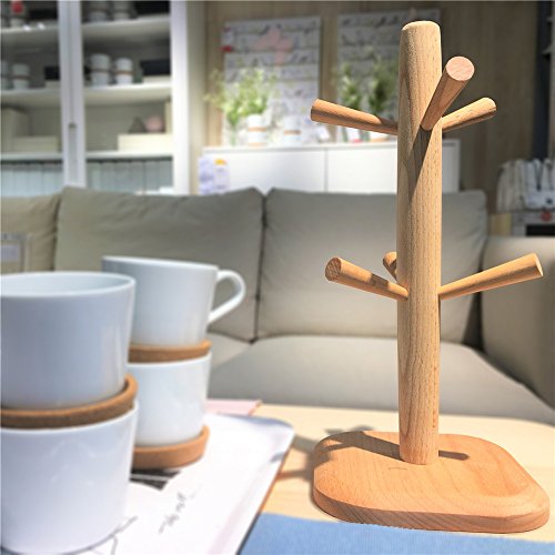 Wood Mug Tree Rack Stand,Cup Holder with 6 Storage hooks