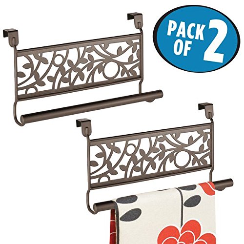 mDesign Kitchen Over-the-Cabinet Vine Towel Bars for Hand Towels, Dish Towels - Pack of 2, Bronze