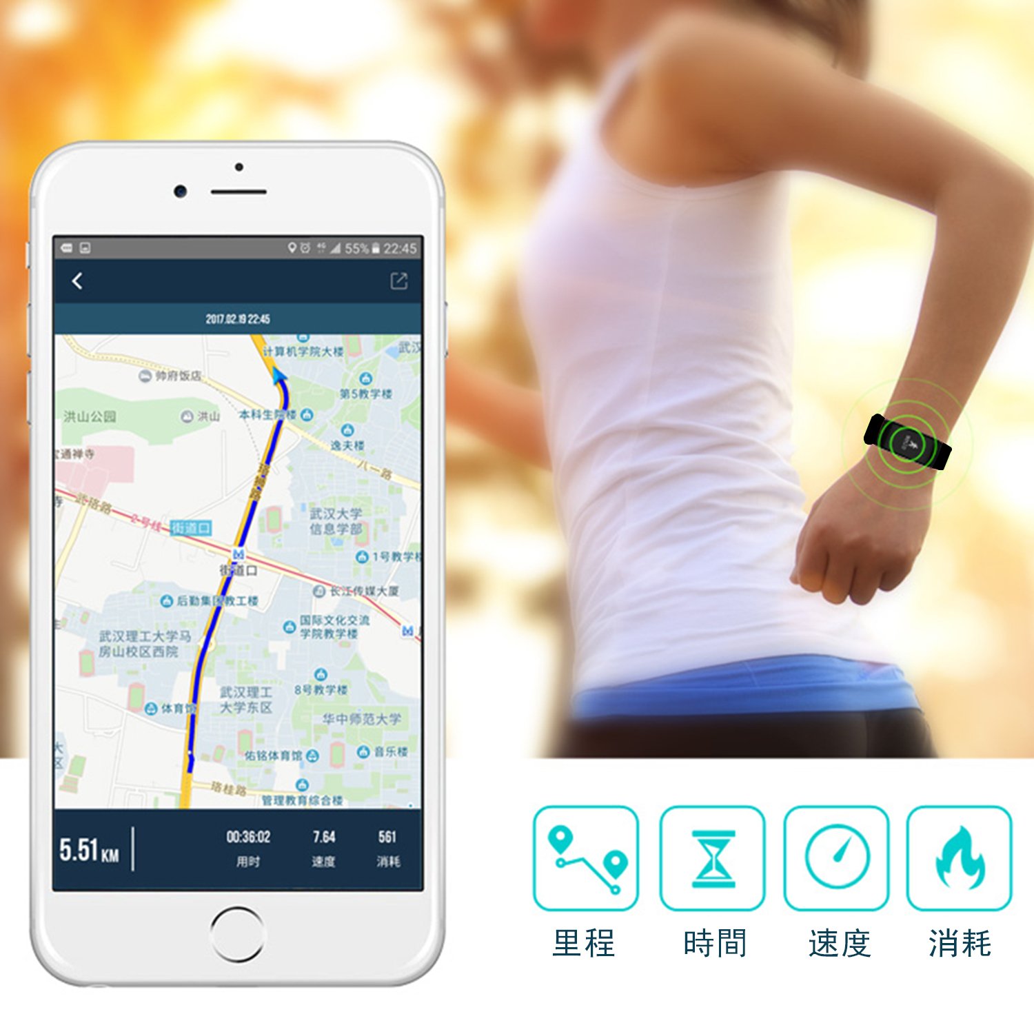 When a mobile phone arrives or a message comes, the fitness wristband will let you know by vibration.