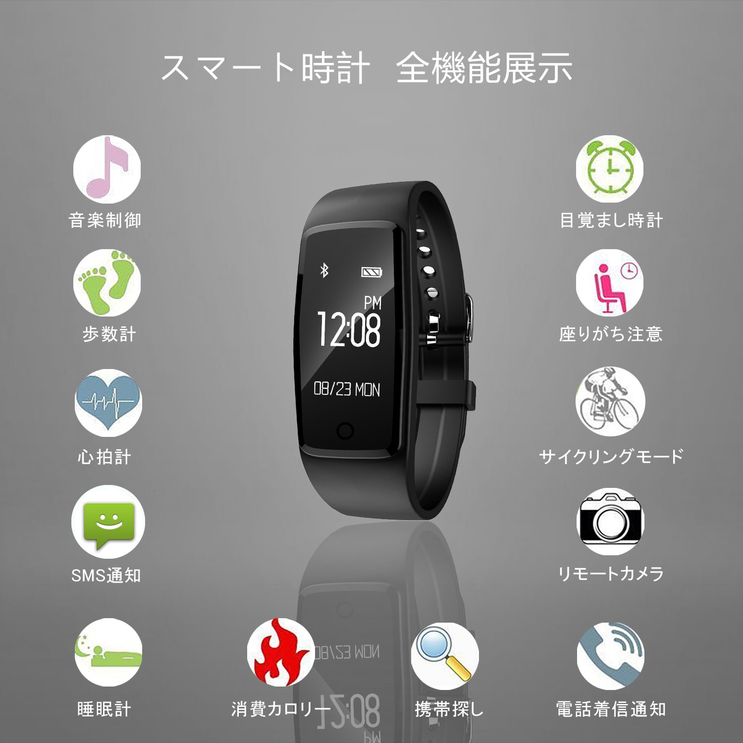 [Multifunctional Sports Watch] Heart rate monitor, activity meter, pedometer, sleep meter, calorie calculation, cycling mode, indoor exercise mode, outdoor exercise mode, time display, date, distance, music reproduction, loss prevention,