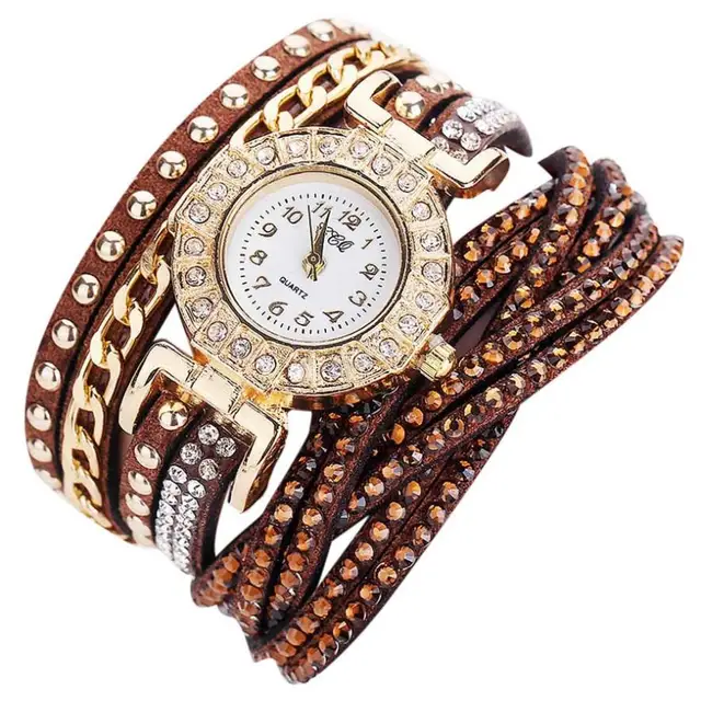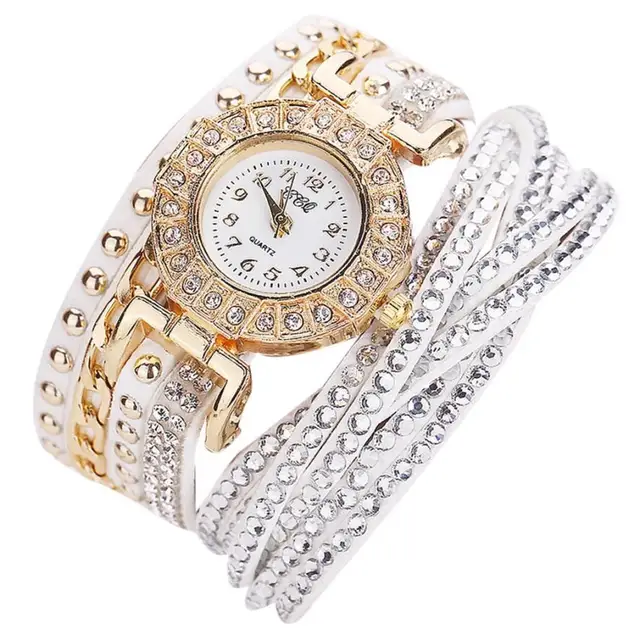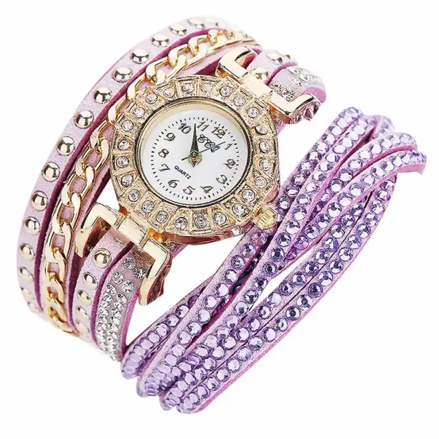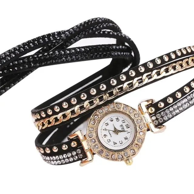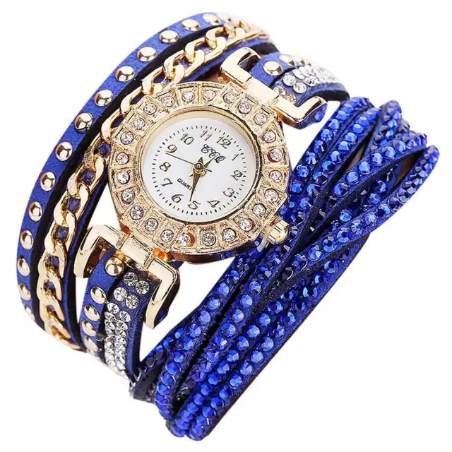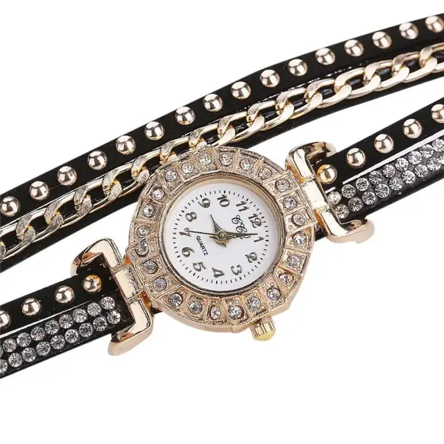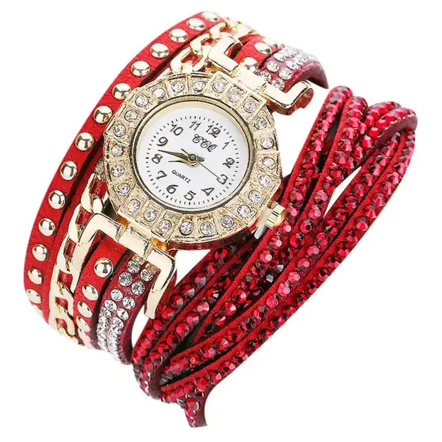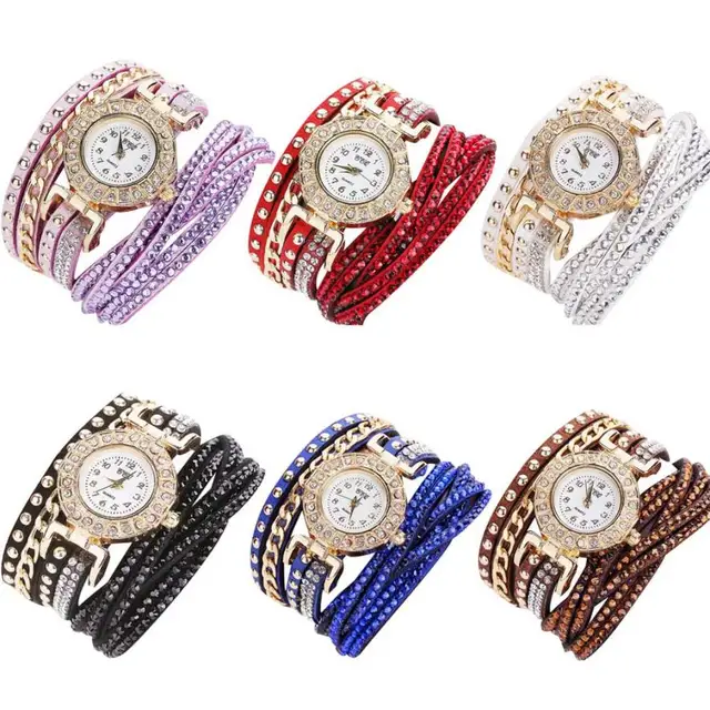 | [해외] 뜨거운 판매 여성 시계 패션 가죽 밴드 라인 석 아날로그 석영 팔찌 시계 럭셔리 빛 컬러 여성 시계 July26 |