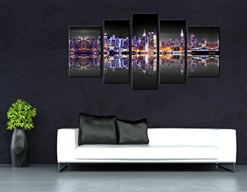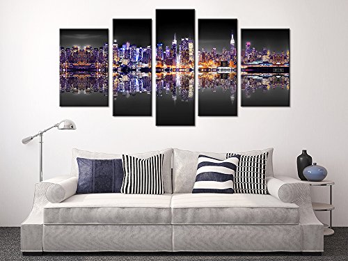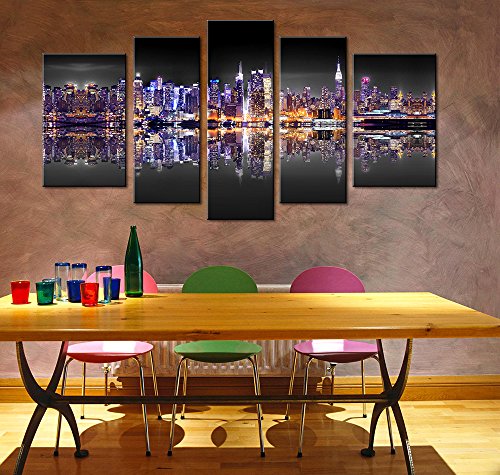 -. Title : Blin Art Modern Art Abstract Decoration Oil Paintings for Living Room and Bedroom on Canvas Wall Pictures City Night Lighting Effect View High Definition P.R.Ints and Poster Ready to Hang 5pcs/set