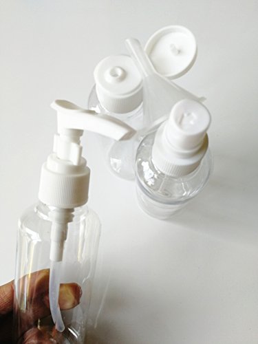 - Wide usage: These clear bottles can use to contain liquid and emulsion toiletries, such as shampoo, makeup, hair products, suntan oil, detergents, shower gel and so on. The clear plastic funnel can help you to transfer liquid or emulsion toiletries with ease and reduce waste.
