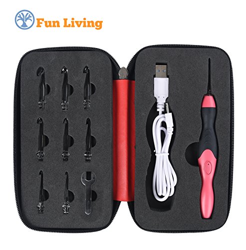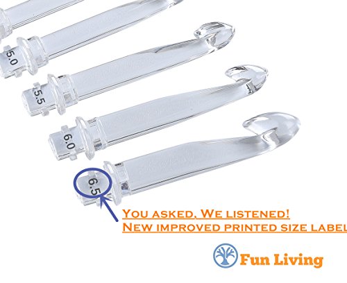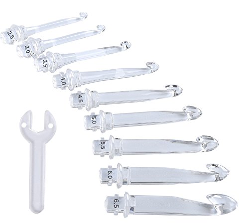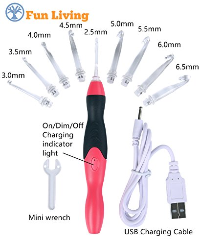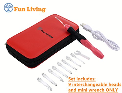 Improved Size Label Fun Living 10 Piece Accessories Kit includes 9 interchangeable heads and 1 mini wrench (Replacement Set ONLY) 2.5mm to 6.5mm for Rechargeable 9 in 1 LED Lighted Crochet Hooks