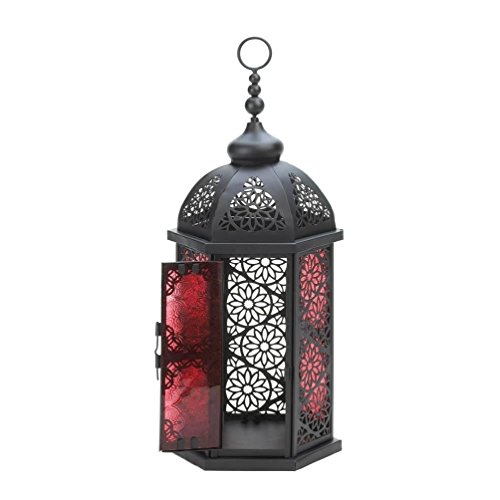 -. Title : 3 Large Red Black Moroccan 16” Tall Lantern Candle Holder Light Outdoor Terrace