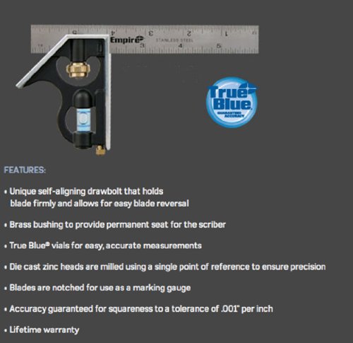 The item is Empire Level E255 6-Inch Pocket Combination Square With Etched Stainless Steel Blade,-Inch Graduations and True Blue Vial