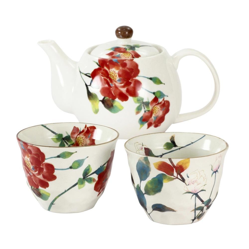 紅白のバラが鮮やかなばら雅ペアポット茶器。