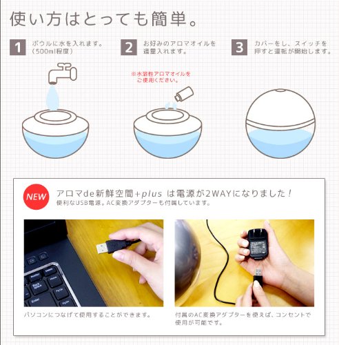원본상품명: 空機 アロマディフュザ 【音タイプ】(約8~10用) アロマオイル1本付き! ★アロマ新鮮空間plus★