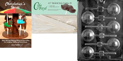 Cybrtrayd 'Basketball Lolly 3D' Sports Chocolate Candy Mold with 25 4.5-Inch Lollipop Sticks and Chocolatier's Guide