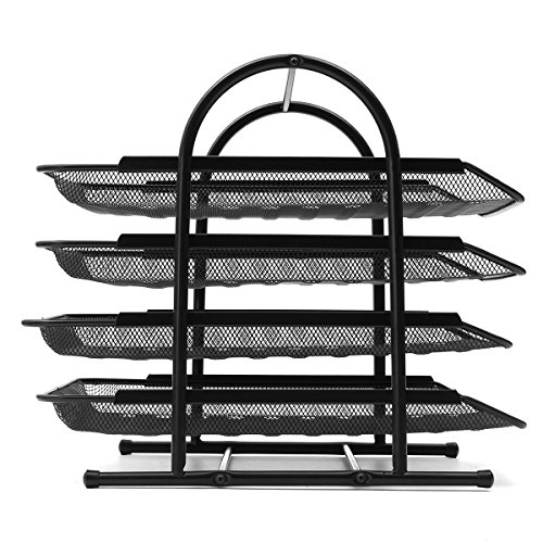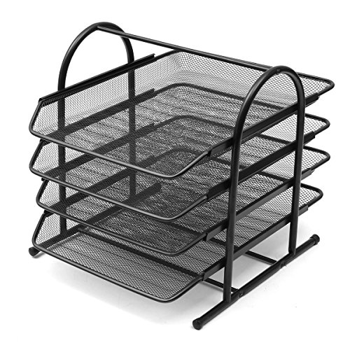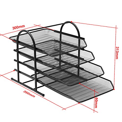Caveen 4 Tiers Black Mesh Filling Front Load Letter Paper Storage Tray Organizer Home Office Use