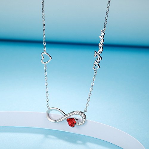 ♥HIGH QUALITY FINE JEWELRY♥ Infinity Design set with heart shaped Garnet Swarovski with Engraved " Love you forever" as a perfect Anniversary gifts or Birthday gifts for women. 18K White Gold over Sterling Silver pendant with 18"+2" Chain.
