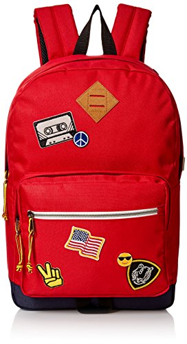 -. Binding : Apparel -. Brand : Steve Madden -. Department : mens -. Feature : Headphone port / Padded and adjustable shoulder straps / Zipper closure / Multipurpose organizational pockets / Exterior patch detail / Pockets: 5 interior slip, 2 interior zip, 2 exterior -. Label : Steve Madden Mens Accessories -. Manufacturer : Steve Madden Mens Accessories -. Model : MM-498 -. PackageQuantity : 1 -. ProductGroup : Apparel -. ProductTypeName : LAGE -. Publisher : Steve Madden Mens Accessories -. Studio : Steve Madden Mens Accessories -. Title : Steve Madden Men's Red Patchwork Dome Backpack