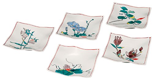 이노정봉 쿠타니야키 4.5 호사각 접시 전 (5 매세트) 그림 변함 K4-123