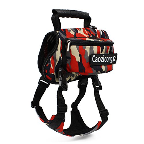 -. Feature : Made of high quality wear resistant polyester material,durable and waterproof. / Built-in rubber handle and a hard D-ring leash attachment on top for extra control. / Adjustable straps and a soft-mesh lined underside for a comfortable and custom fit. / Large capacity to hold all of your dog's travel essentials such as treats,toys,first-aid supplies and travel bowls. / Great gifts for dog lovers,perfect for service dogs daily walking,hiking,camping or training.